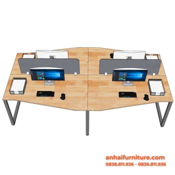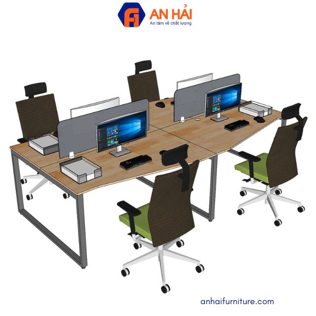 Giúp tối ưu diện tích sàn khi bố trí 4 người làm việc cùng lúc mà vẫn giữ khoảng giữa thông thoáng.