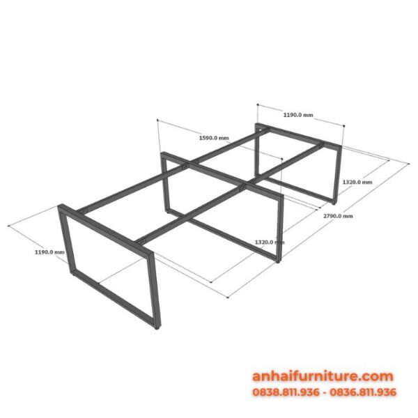 Hình ảnh thực tế Bàn làm việc 4 người 280×160cm gỗ cao su chân sắt hệ Rectang HBRT079