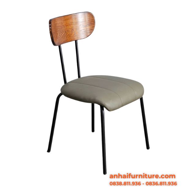 Màu sắc ghế | Nệm ghi xám – lưng ghế gỗ nâu sậm – khung đen |