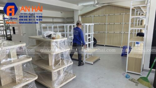 4. Hình ảnh thực tế thi công nội thất, giá kệ tại Cửa Hàng Mẹ và Bé