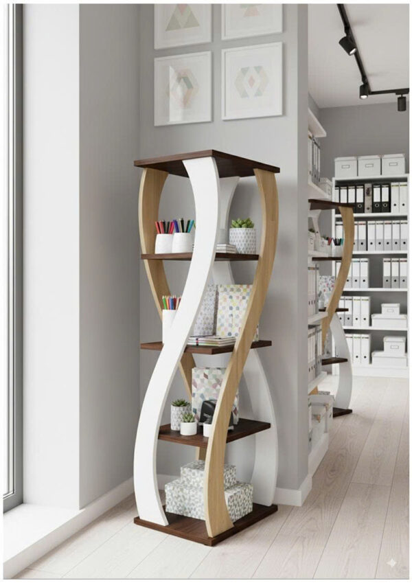 - Công dụng: Kệ sách xoắn không chỉ dùng để đựng sách, tài liệu mà còn có thể dùng để trang trí, tạo điểm nhấn cho không gian sống như phòng khách, phòng ngủ hay phòng làm việc.